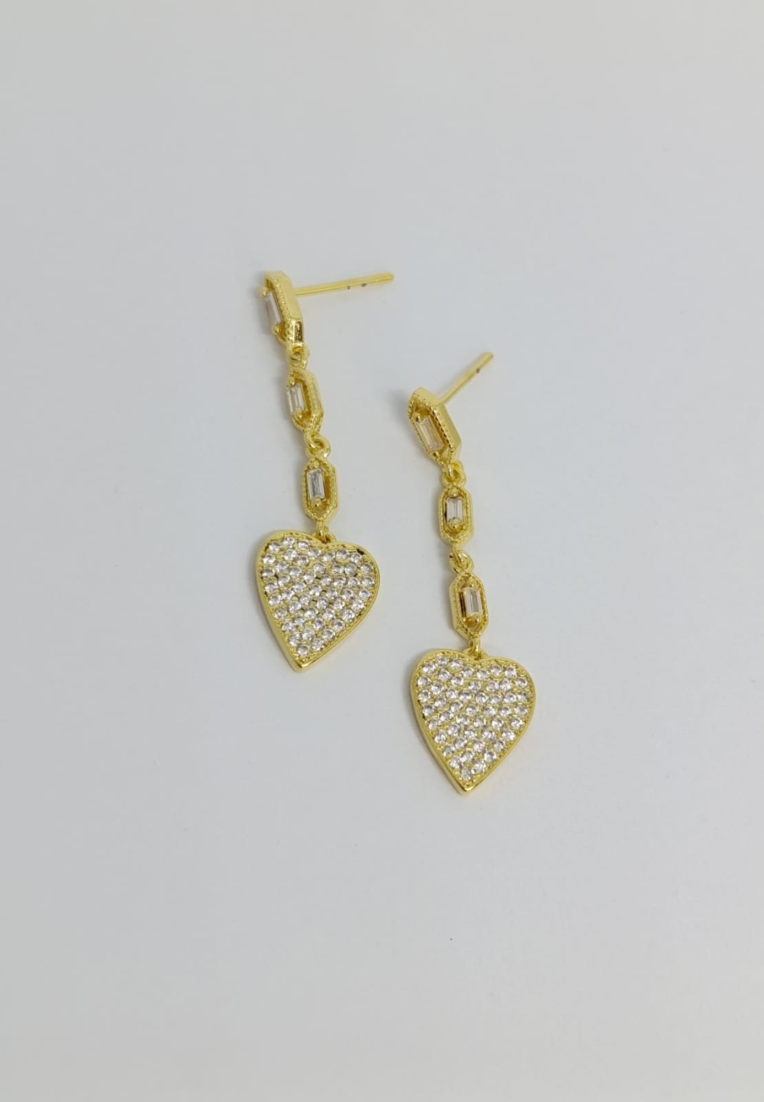 O brinco alongado com ponta de coração cravejado combina leveza, sofisticação e um toque de doçura. Seu formato fino e elegante se estende suavemente até a charmosa ponta em forma de coração, toda cravejada com microzircônias que capturam a luz com brilho sutil e encantador.