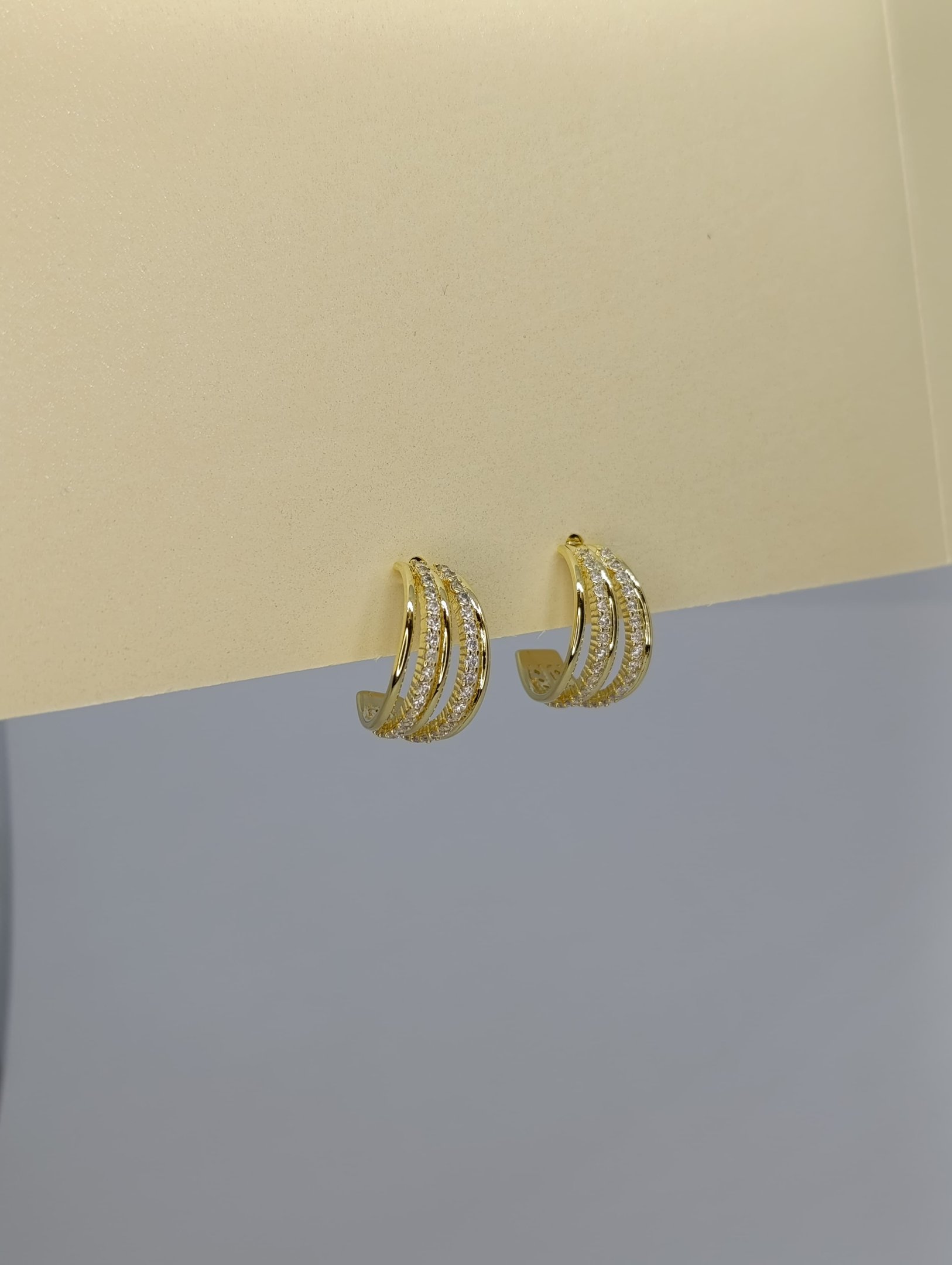 Brinco Meia Argola Triplo com Pedras de Zircônia – Luxo e Brilho em Cada Detalhe
