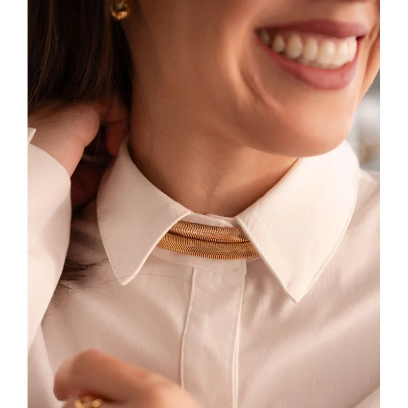 Inspirado nas passarelas e nas maiores tendências da moda, o colar lacraia possui elos achatados e encorpados, que criam um visual impactante, sem perder a leveza. É perfeito para usar sozinho como destaque ou em mix com colares mais delicados.