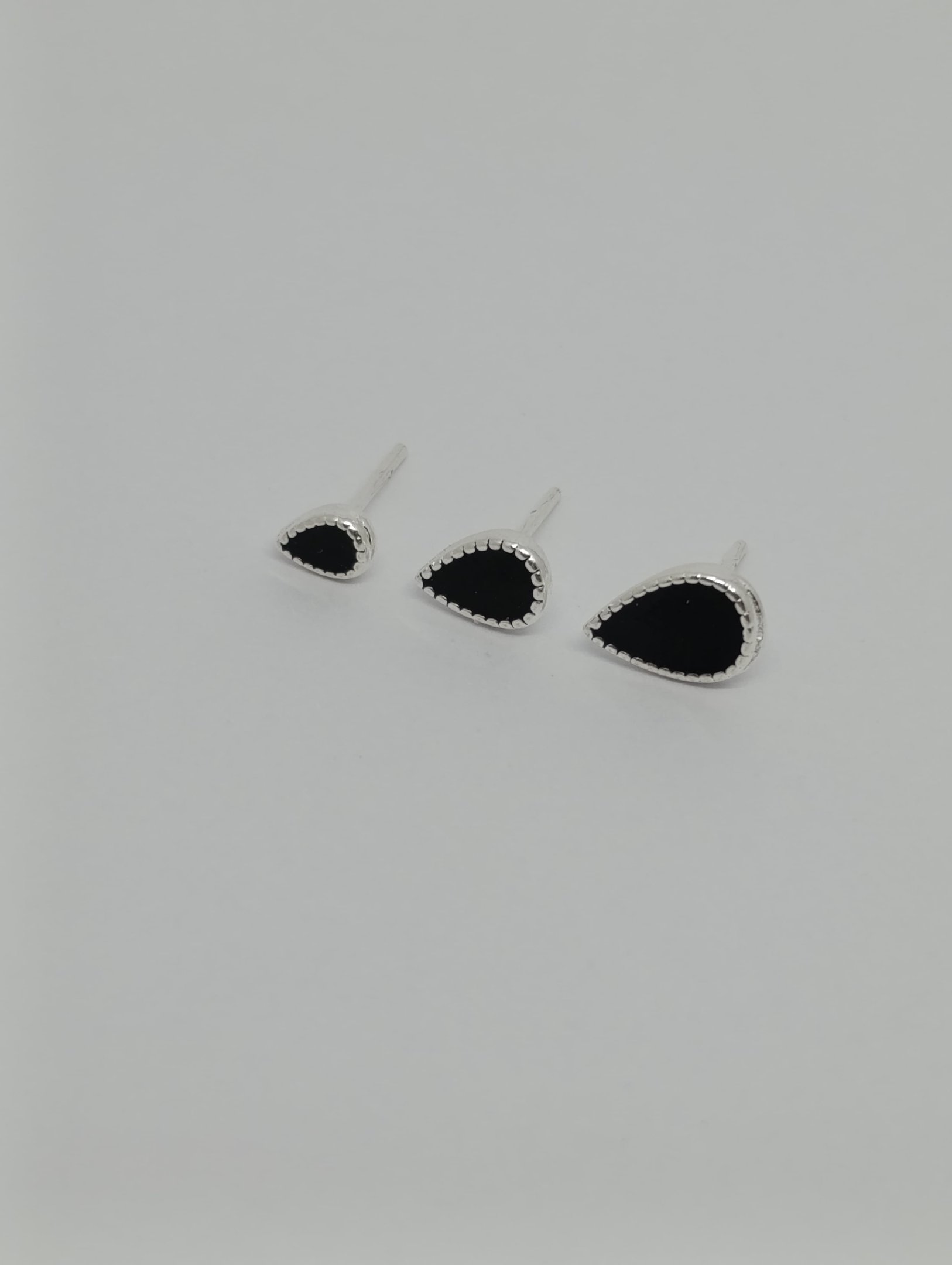 Trio de brincos pequenos em formato de gota